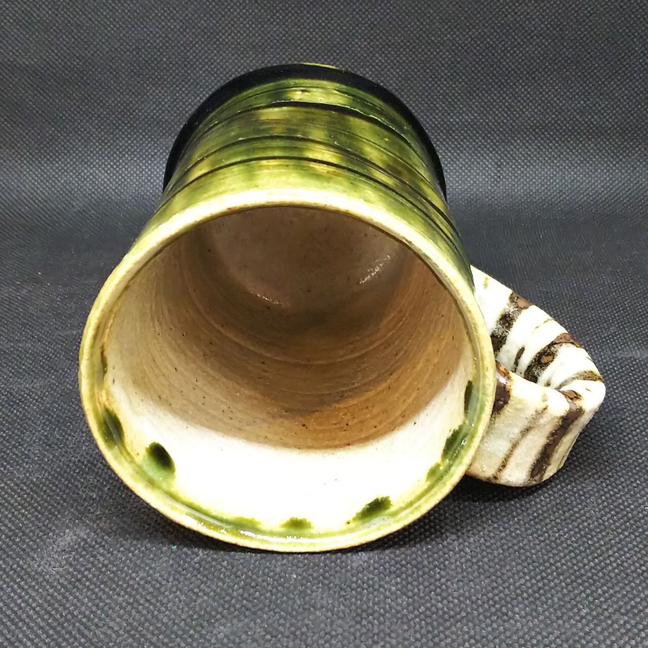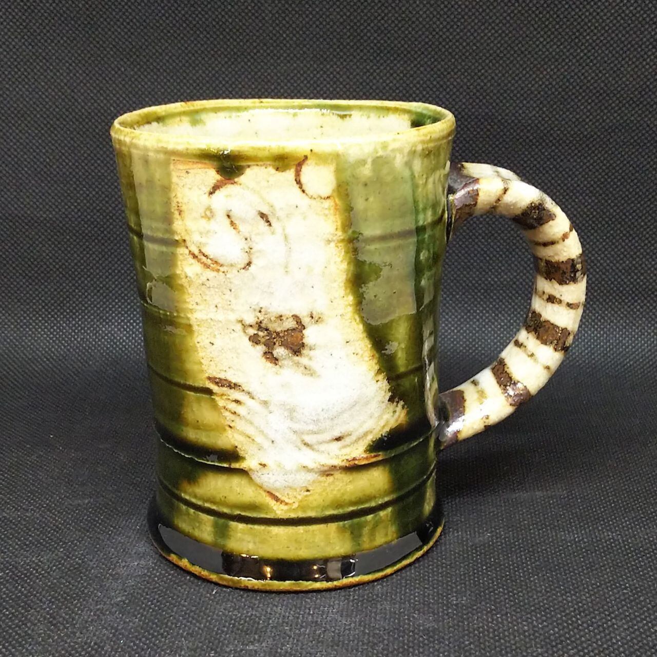 波多野正典作 織部マグ 取手茶ボーダー