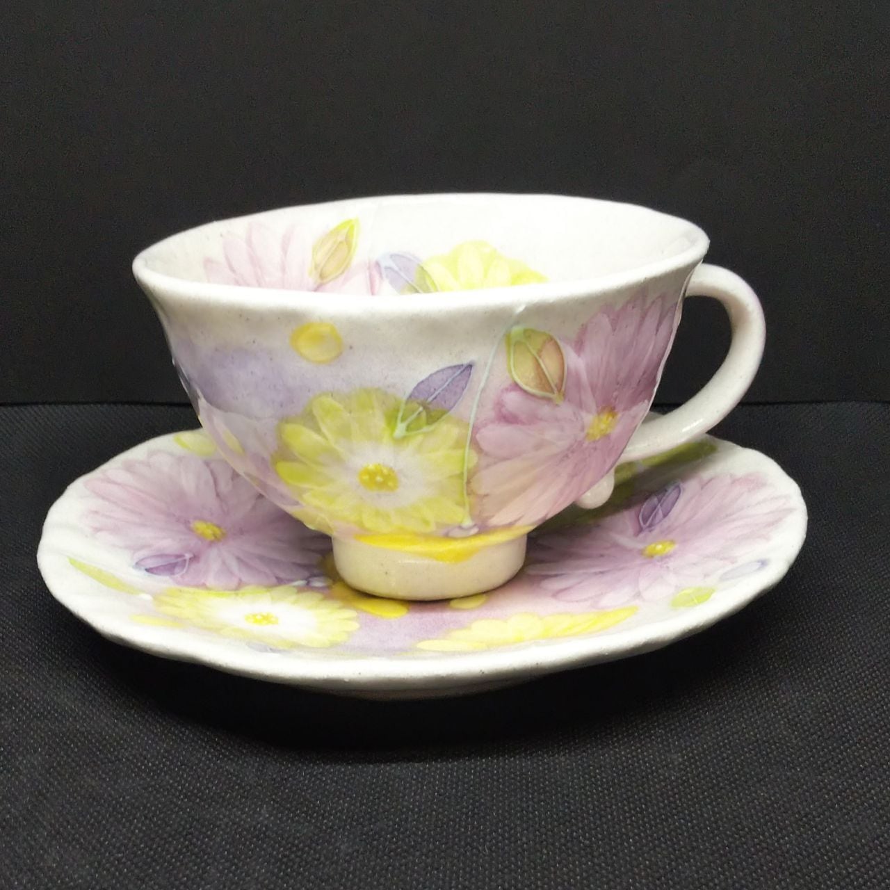 風花 彩粉引花紋 コーヒーカップセット(紫)