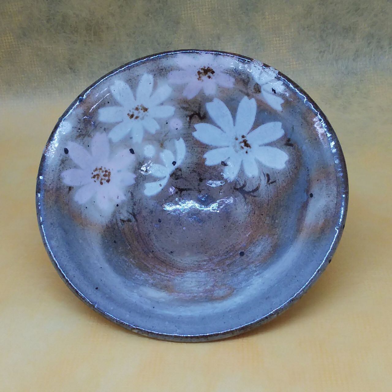 菊陶作 秋桜花 平ぐい呑み(木箱付き)